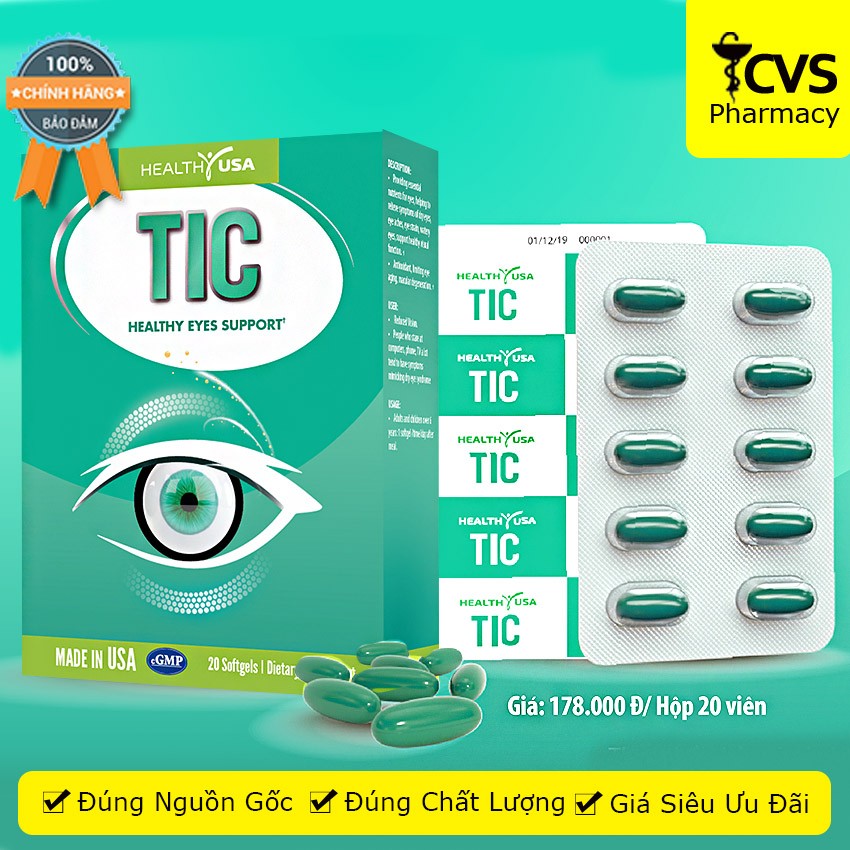 TIC (Healthy Eye Support)Viên Uống Bổ Sung Dưỡng Chất Cho Mắt, Tăng Cường Thị Lực - cvspharmacyQuy cách đóng gói:Hộp 20 viê 178.000đ
