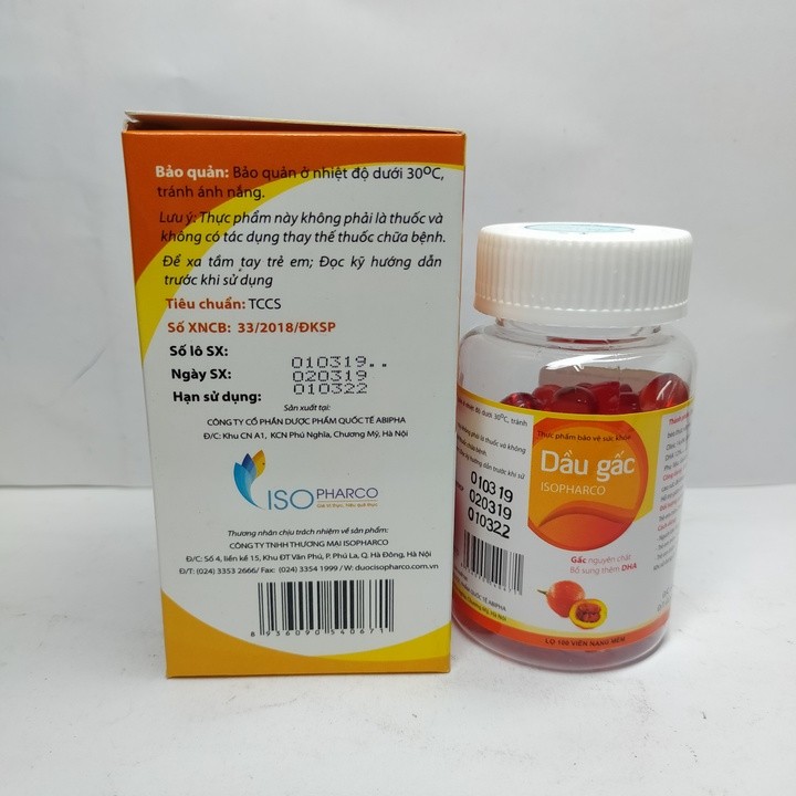 Dầu Gấc Isopharco - Lọ 100 Viên