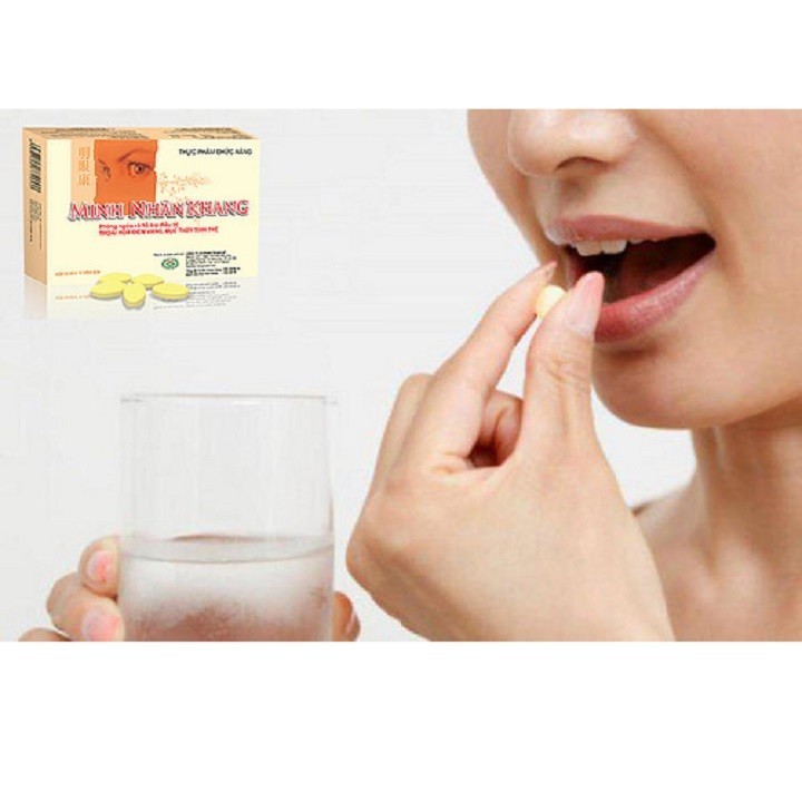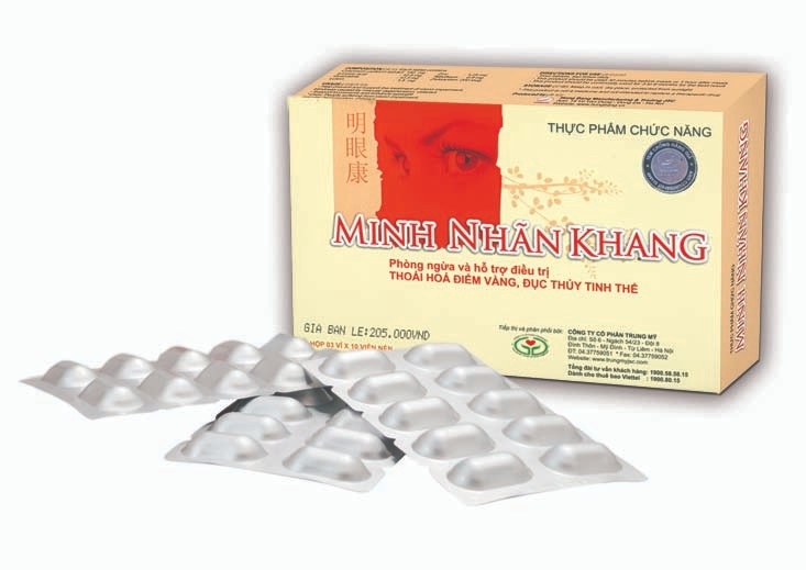Minh Nhãn Khang - Giúp Cho Đôi Mắt Luôn Sáng, Giải Pháp Cho Đôi Mắt Sáng Khỏa Của Bạn ✅✅✅(Chính Hãng 100%)☘️☘️☘️ Thành phần Minh Nhãn Khang- Cao Hoàng Đằng:...............150mg- Alpha - Lipoic acid:............12.5 mg- Quercetin:............................12.5 mg- Lutein:.....................................1.5 mg- Zeaxanthin:..........................200 mcg- Kẽm:......................................1,25 mg- Vitamin B2:.............................0.9 mg⭐⭐⭐ Công dụng Minh Nhãn Khang- Giúp hỗ trợ điều trị và phòng ngừa mù lòa do đục thủy tinh thể, thoái hóa điểm vàng, khô mắt..- Tăng cường thị lực cho mắt⭐❤️❤️ Đối tượng sử dụng minh nhan khang- Dùng cho người giảm thị lực, đục thủy tinh thể, thoái hóa điểm vàng, khô mắt và các bệnh về mắt.❤️❤️❤️ Hướng dẫn sử dụng minh nhan khang- Ngày uống 2 lần, mỗi lần 2 viên cho mục đích phòng ngừa hoặc theo hướng dẫn của bác sĩ điều trị.Nên uống trước bữa ăn 30 phút hoặc sau khi ăn 1 giờ. Nên sử dụng liên tục từ 3 – 6 tháng để có kết quả tốt nhất.Quy cách đóng gói: Hộp 3 vỉ x 10 viên nénGXNNDQC: 1943/2014/XNQC-ATTPCNTCSP: 15645/2014/ATTP-XNCB* Sản phẩm này không phải là thuốc và không có tác dụng thay thế thuốc chữa bệnh.