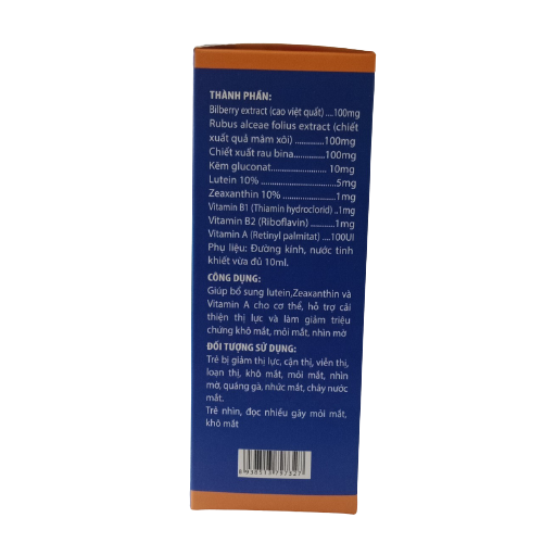 Bổ mắt EYEKID - Tăng cường thị lực cho bé, chống nhức mắt, mỏi mắt, mờ mắt - Hộp 20 ốngTHÀNH PHẦN CỦA BỔ MẮT E 159.000đ