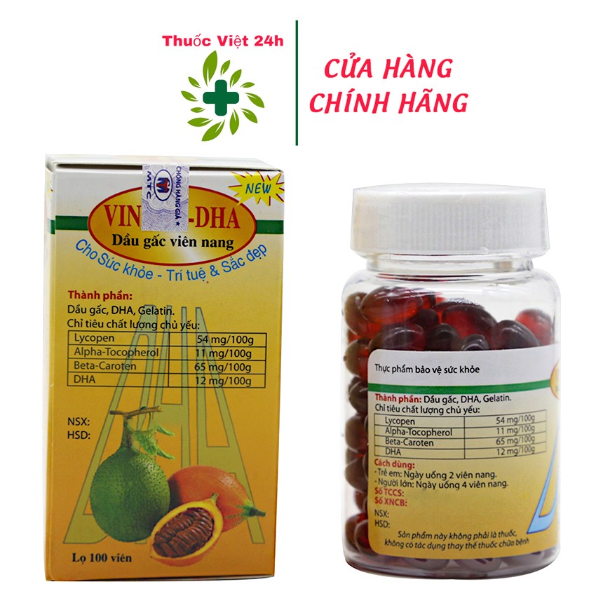 Viên uống Dầu Gấc Vinaga-DHA 100 viên - Vinaga DHA bổ mắt, đẹp da - thuocviet24h