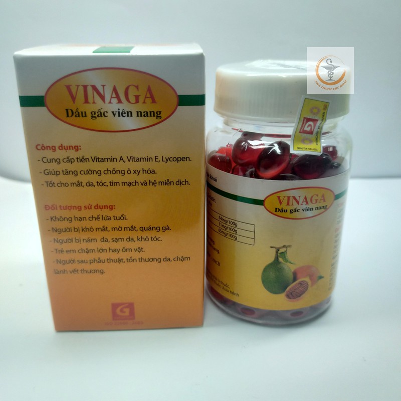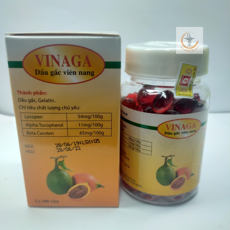 Dầu Gấc Vinaga - Lọ 100 ViênThành phầnDầu gấc, GelatinChỉ tiêu chất lượng chủ yếuLycopen54mg/100gAlpha Tocopherol11mg/100gBe 60.000đ