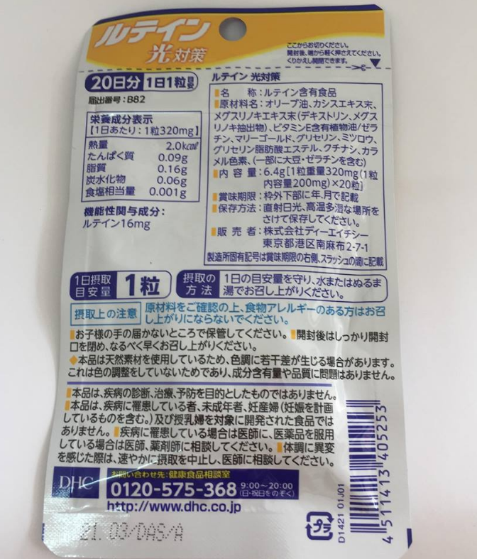 Viên uống chống ánh sáng xanh DHC Lutein Nhật gói 20 ngàyNhà sản xuất: DHCXuất xứ: Nội địa Nhật BảnQuy cách: Túi 20 vi