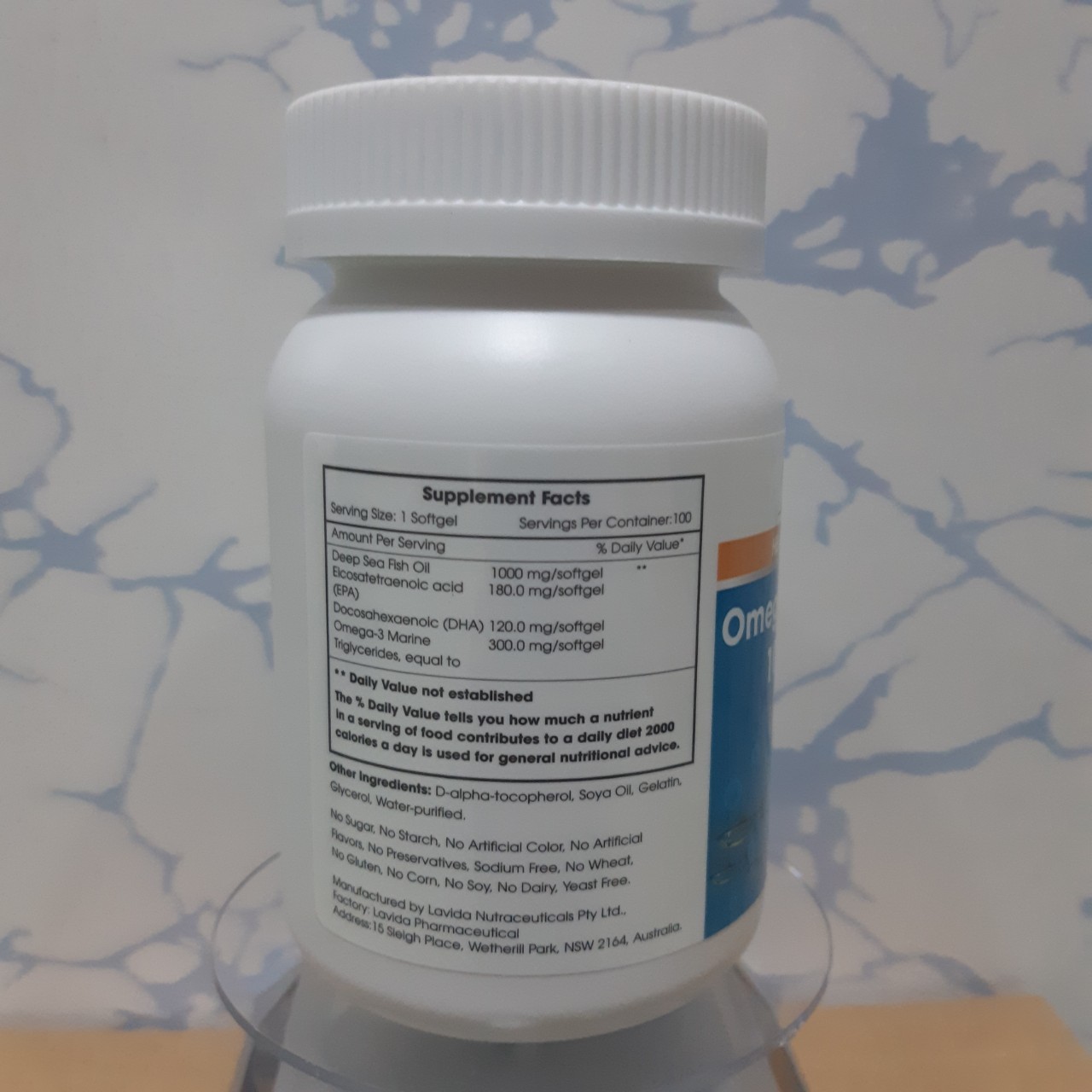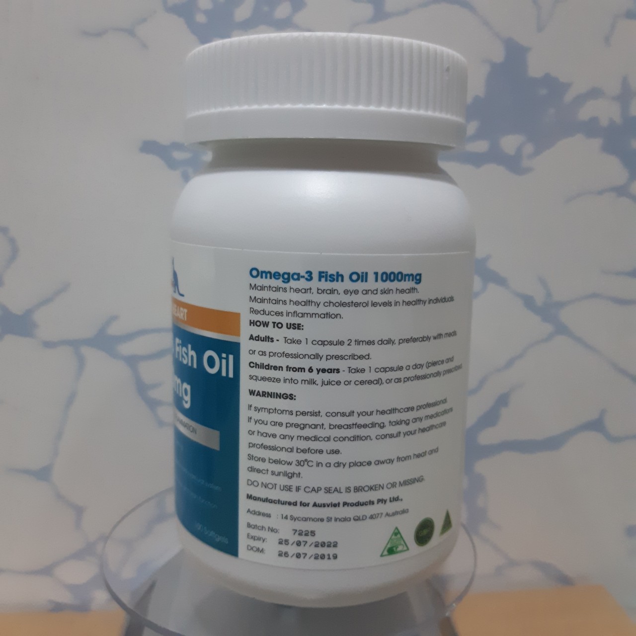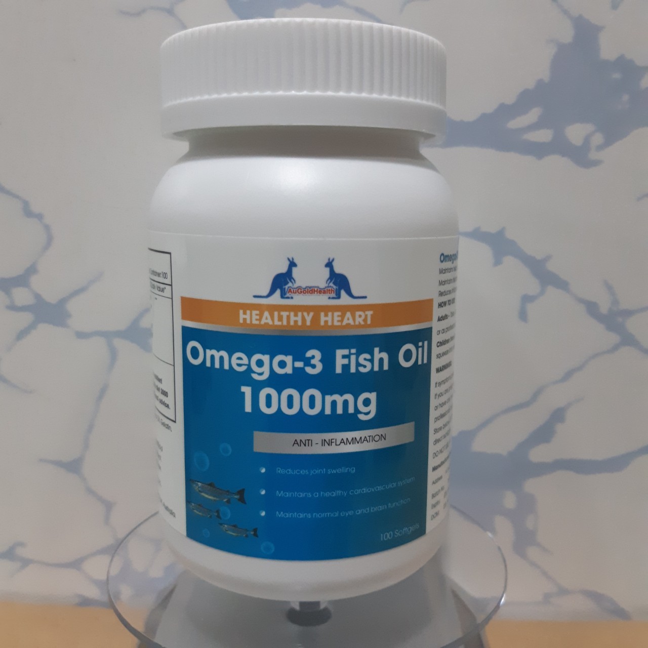 Sản phẩm này không phải là thuốc và không có tác dụng thay thế thuốc chữa bệnh.Thành phần và công dụng:- Viên Uống Dầu Cá Hãng AuGoldHealth - Omega 3 Fish Oil 1000mg với chiết xuất từ dầu cá giàu omega-3, có nhiều tác dụng trong việc bảo vệ và cải thiện sức khỏe.- Omega-3 được biết đến với nhiều công dụng như hỗ trợ hệ tuần hoàn và tim mạch, cải thiện thị giác, ngăn ngừa các dấu hiệu lão hóa trên da, làm giảm nguy cơ đột quỵ cũng như hỗ trợ kìm hãm sự lão hóa các tế bào não, giúp duy trì và cải thiện trí nhớ, cho bạn luôn có một cơ thể khỏe mạnh, tinh thần minh mẫn.- Giúp cải thiện thị lực, cho mắt luôn sáng khỏe.- Bảo vệ tế bào thần kinh, duy trì và cải thiện trí nhớ.- Hỗ trợ tuần hoàn, bảo vệ tim mạch, giảm nguy cơ tử vong do tim mạch, giảm nguy cơ đột quỵ, làm chậm quá trình lão hóa.- Hỗ trợ quá trình giảm cân, tăng cường hệ miễn dịch cho cơ thể mà không gây tác dụng phụ.- Cân bằng các chất hóa học trong não, ngăn ngừa và chống suy nhược cơ thể.- DPA là một chất rất cần thiết cho sự phát triển hoàn thiện của thai nhi và tế bào thần kinh của thai nhi. DPA giữ một vai trò rất quan trọng trong suốt quá trình phát triển trước và sau khi sinh của trẻ nhỏ.- DHA chiếm tỉ lệ rất cao trong chất xám (tạo ra sự thông minh) của não và trong võng mạc (tổng chỉ huy sự nhìn của mắt). DHA tạo ra độ nhạy của các nơ-ron thần kinh, giúp dẫn truyền thông tin nhanh và chính xác.- EPA giúp tạo ra Prostagladin trong máu có tác dụng ức chế sự đông vón tiểu cầu, giảm và phòng ngừa hình thành huyết khối, đồng thời có thể giảm bớt lượng cholesterol, giảm bớt triglyceride trong máu làm giảm độ nhớt dính của máu, giữ cho tuần hoàn được thông thoáng.- Không sử dụng Omega 3 khi đang sử dụng điều trị huyết áp cao, vì sự kết hợp này có thể làm huyết áp tụt xuống mức quá thấp.- Khi bị mất ngủ, hãy uống viên dầu cá omega 3 trong bữa ăn tối. Các nhà khoa học ở Đại học Oxford, Mỹ, đã nghiên cứu và kết luận rằng nồng độ omega 3 cao trong máu sẽ giúp bạn dễ ngủ và ngủ ngon hơn.
