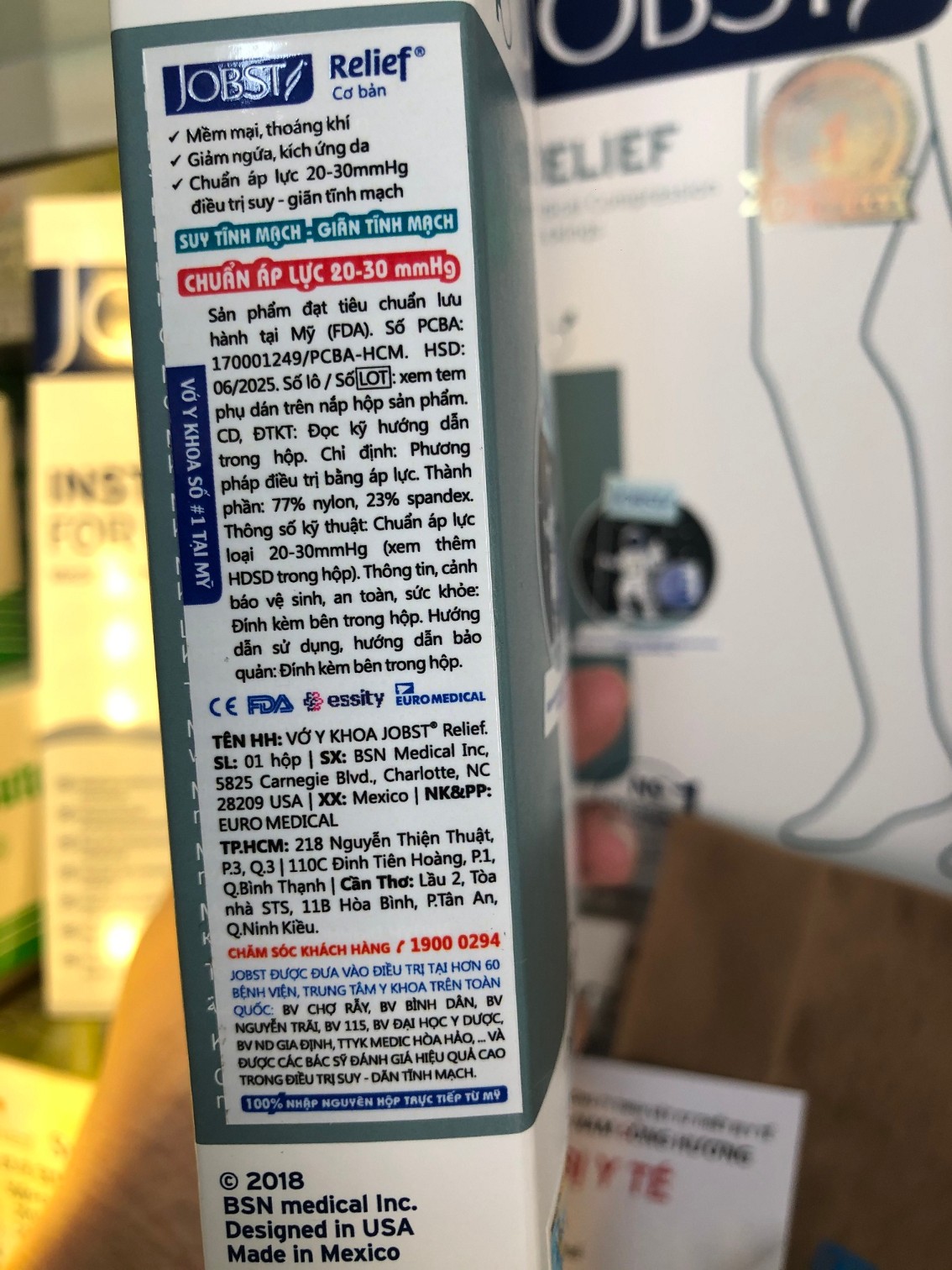 Vớ/tất y khoa gối suy giãn tĩnh mạch chân JOBST Relief chuẩn áp lực 20-30mmHg