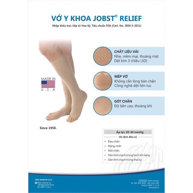 Vớ y khoa JOBST – Hiệu quả cao trong điều trị suy tĩnh mạch – dãn tĩnh mạchVớ gối Chuẩn áp lực [20-30]mmHgMềm mại, 545.000đ