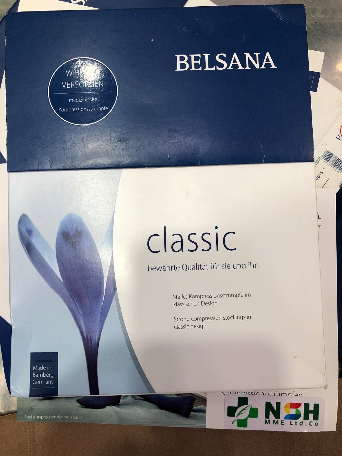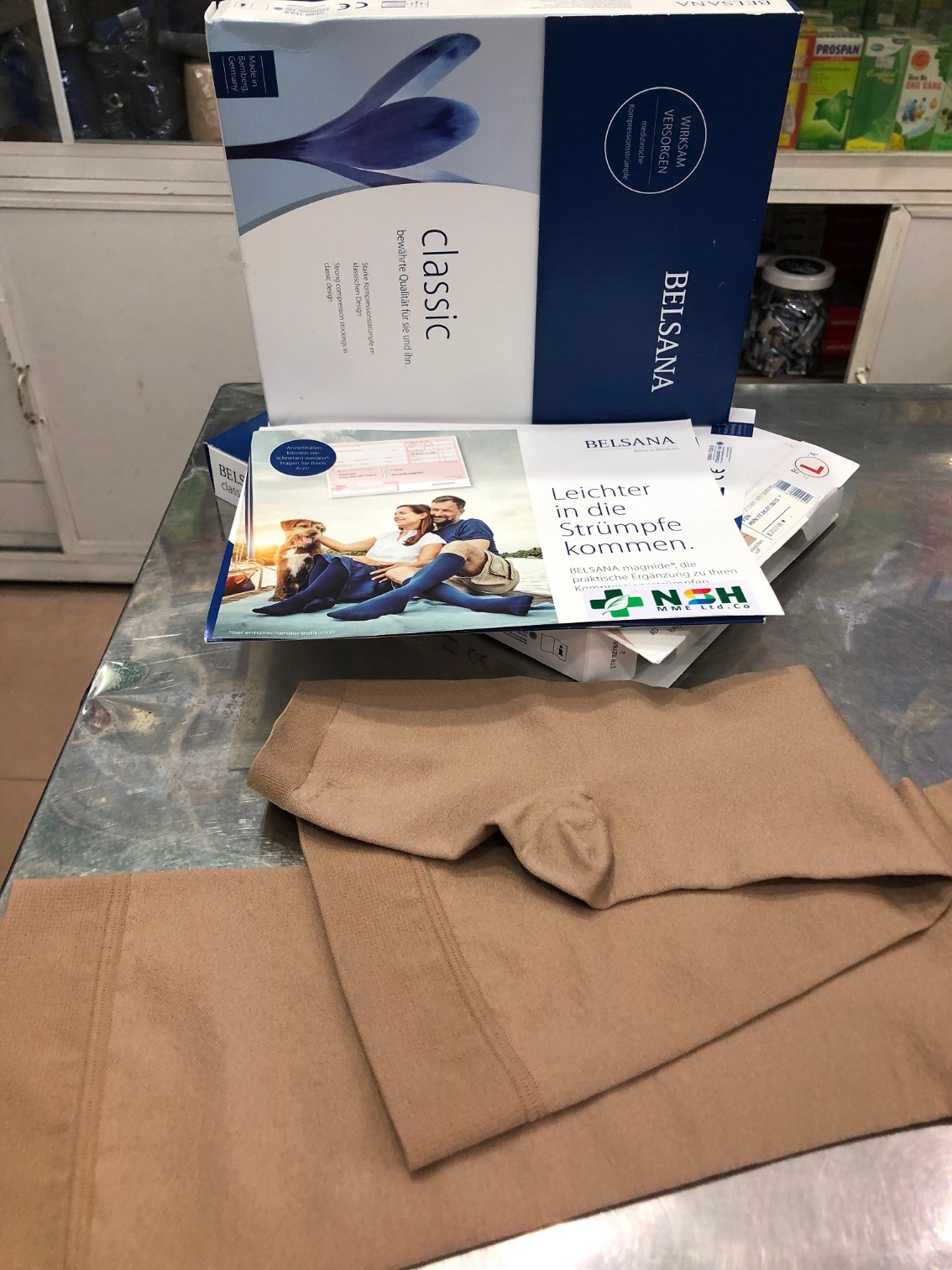 5/ Tất y khoa Belsana – sản phẩm chất lượng, đáng tin cậy cho người bị giãn tĩnh mạch chânVớ y khoa Belsana được sản xuất tại Đức, tuân thủ nghiêm ngặt các tiêu chuẩn chất lượng của các tổ chức:- Hiệp hội thẩm định chất lượng – RAL của Gutezeichengemeinschaft e.V.- Nguyên tắc thẩm định châu Âu CE- Chứng nhận vải Oeko-Te không có các chất độc hại- Đạt tiêu chuẩn hiệu quả y tế của vớ do Viện Hohenstein kiểm địnhChất liệu vớ: 74% polyamide, 26% elastane, giúp người mang:- Thoải mái- Độ đàn hồi cao- Thoáng khí khi mang trong thời gian dài, ngay cả khi thời tiết nóng bức.- Độ bền cao (6 tháng-1 năm)- Chất liệu vải êm ái, không chứa các chất độc hại, mang lâu không bị ngứa chân và tác dụng phụ lên chân.>> Đây là sự khác biệt rõ nét của vớ y khoa Belsana so với các dòng vớ khác.Công nghệ may nối cao cấp, không có các đường may nổi cộm:Vớ gối Belsana không có đường may nổi cộm chỗ vết gấp giúp máu lưu thông tốt, không gây cản trở quá trình lưu thông máu.Đảm bảo hàng chính hãng, chất lượng:Dễ dàng nhận biết vớ chính hãng nhờ có tem được may bên trong mặt vớ, trên tem gi rõ thương hiệu vớ và size vớ, mức áp lựcVớ y khoa Belsana được sản xuất tại Đức, đạt các chứng chỉ chất lượng y tế nghiêm ngặt của Đức và châu Âu, chất liệu vải tốt, đường may sắc sảo cùng với giá cả hợp lí đã và đang là lựa chọn hàng đầu của người bị bệnh suy giãn tĩnh mạch chân. Sở hữu vớ y khoa Belsana, bạn không còn lo lắng nhiều về bệnh suy tĩnh mạch của mình nữa.