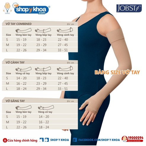 Vớ găng tay phù bạch huyết JOBST BELLA LITE, chuẩn áp lực 20 -30 mmHg, màu da