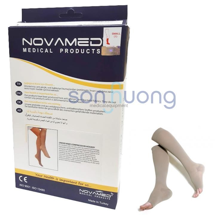 Vớ y khoa điều trị giãn tĩnh mạch NOVAMED- Vớ dài qua đùiĐơn vị tính: 2 chiếc/hộpĐã được Cơ quan Quản lý thuốc và dược phẩm của NOVAMED( Thổ Nhĩ Kì ) cấp giấy chứng nhận đạt tiêu chuẩn chất lượng.Sản phẩm có tác dụng làm giảm đường kính các tĩnh mạch, khép các van tĩnh mạch ngăn máu chảy ngược xuống phần thấp của chân làm giảm hiện tượng nổi gân xanh ở chân, nặng chân, sưng phù.Sản phẩm giúp phục hồi chênh lệch áp suất trong hệ tĩnh mạch làm tăng tốc độ dòng máu chảy về tim, phòng ngừa sự hình thành huyết khối tĩnh mạch, giảm triệu chứng và điều trị suy tĩnh mạch.Sản phẩm ứng dụng công nghệ Sanitized® chống khuẩn, nấm mốc,ngăn sự phát triển mùi hôi, giúp bạn tươi mát suốt cả ngày và không lo dị ứng.Vớ được thiết kế hở ngón phù hợp cho bệnh nhân đái tháo đường, rối loạn dinh dưỡng da hay gặp các vấn đề ở ngón chân.Được sản xuất bằng công nghệ cao, máy móc tiên tiến,thiết kế đa dạng, hợp thời trang, trông không giống vói vớ y khoa thông thường, sợi tổng hợp, kéo căng 4 chiều, và rất dễ dàng để đi vào và cởi ra.Cách bảo quản:- Có thể giặt máy hoặc giặt tay bằng nước ấm với xà phòng trung tính. Nên cho vớ vào túi giặt nếu giăt bằng máy. Tránh dầu mỡ, clo và các chất tẩy trắng khi giặt vớ.- Phơi vớ ở nơi thoáng mát, tránh nhiệt độ cao và ánh nắng trực tiếp.- Không ủi (là), sấy vớ.- Không vặn, xoắn, kéo chỉ hoặc dùng kéo cắt chỉ trên vớ.- Nếu vớ bị bám bẩn, làm sạch vớ bằng miếng xốp mềm, ẩm.Thích hợp cho cả nam và nữ.- Có thể sử dụng vớ khi làm việc lâu tại văn phòng, khi đi máy bay hoặc tàu xe đường dài trên 3 giờ…- Có 4 loại cho bạn lựa chọn.- Sản phẩm có 5 size: SIZEVớ được làm từ Chất liệu sợi Lycra làm từ sợi vải có tính co giãn đàn hồi rất cao