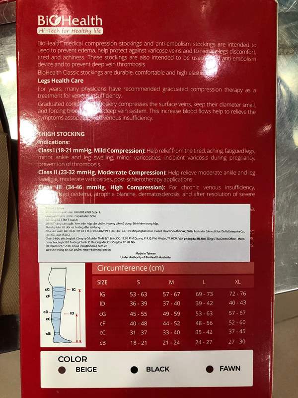 Vớ đùi tất đùi áp lực y khoa hỗ trợ suy giãn tĩnh mạch chân BIOHEALTH của ÚC [Được kiểm hàng] bio2Gọi ngay hoặc c 900.000đ