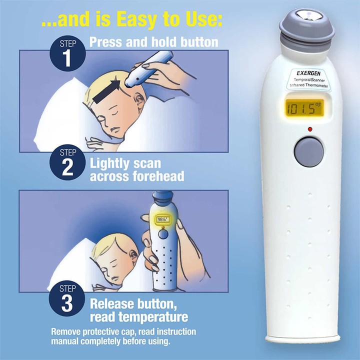 Sử dụng dễ dàng, chính xác, đặc biệt cho bé từ sơ sinh trở đi- Xử lý 1000 kết quả trong vòng 1 giây, giúp đo nhiệt độ trở nên chính xác hơn bất cứ loại nào- Sử dụng pin 9v, đã đi kèm trong máy- Đo nhiệt độ Exergen (Trán) có chế độ tự động tắt khi không sử dụng giúp tiết kiệm điện.- Bộ nhớ của máy tự động lưu giữ lại 8 lần đọc nhiệt độ cuối cùng để dễ kiểm tra, theo dõi sự tiến triển của sốt.- Có thể chủ động cài đặt âm thanh: Có thể tắt hoặc bật âm thanh báo động để báo thức trẻ ngủ (hoặc người lớn). Đèn LED nhấp nháy quay về phía trán trong khi chức năng quét hoạt động.