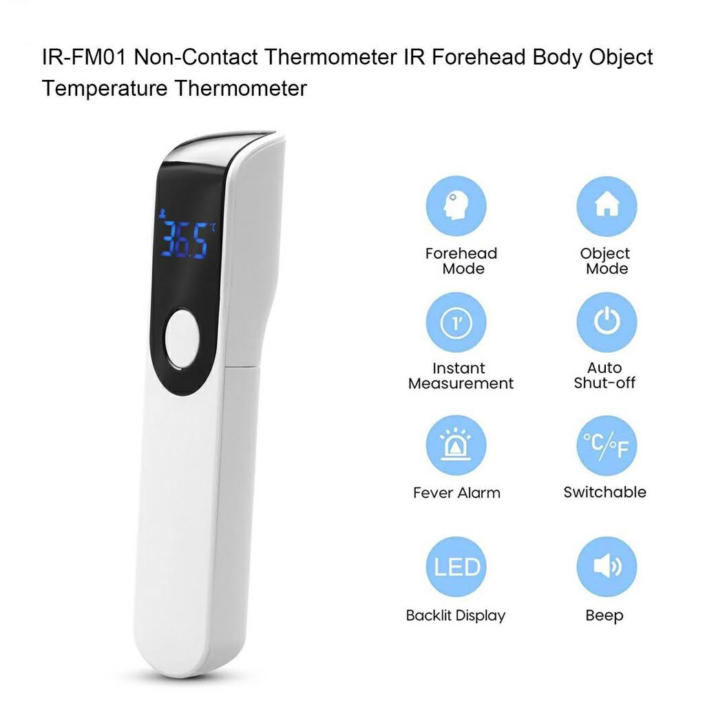 Thông số kỹ thuật:Loại sản phẩm: Nhiệt kế không tiếp xúcChất liệu: ABSMàu sắc: trắng, đen (tùy chọn)Mẫu: IR-FM01Cảm biến nhiệt độ: hồng ngoạiChế độ hiển thị: Kỹ thuật sốLEDNguồn điện áp: DC 3V( 2 * AAA)Vị trí đo: tránKhoảng cách đo: 3-5 cmPhạm vi đoChế độ cơ thể: 32 ° C-42.9 ° C( 89.6 ° F-109.4 ° F)Chế Độ Đối tượng: 0 ° C-80 ° C( 32 ° F-176 ° F)Độ chính xác đo: ± 0.2 ° C: 35.0 ° C-42.0 ° C± 0.4 ° F: 95.0 ° F-107.6 ° FThời gian đo: 1STự động tắt: 8 giây nếu không hoạt độngCảnh báo màu đỏ (chế độ cơ thể):38.5 ° C ≤t≤ 43.0 ° C/t≤ 32 ° CCảnh báo màu vàng (chế độ cơ thể) :37.5 ° C ≤t≤ 38.5 ° CCảnh báo màu đỏ: 80 ° C ≤t hoặc t≤ 0 ° CĐộ ẩm tương đối: 15% ~ 95%Áp suất khí quyển: 70kPa ~ 106kpaKích thước sản phẩm: Khoảng 12*2cm / 4.72*0, 79inKích thước đóng gói: Khoảng 12,5*3.2*2.5cm / 4.92*1.26*0, 98inTrọng lượng gói hàng: Khoảng. 40g / 1.41oz